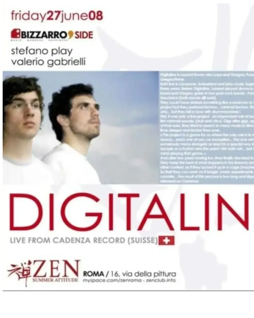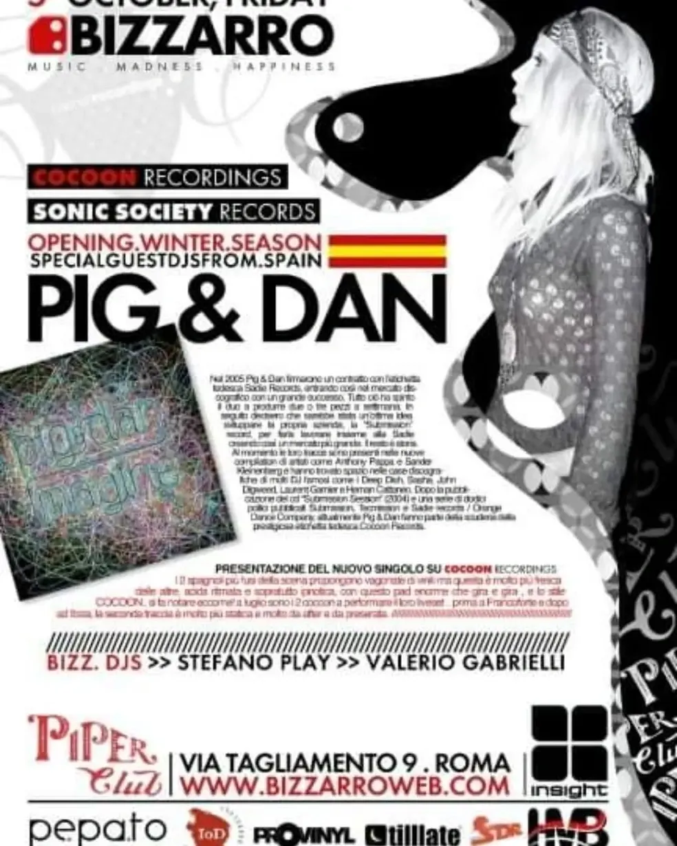 Then from 2004 I did a real full immersion in the various evenings and situations of Rome-Oasi disco club, Pinetina, Openbar, Mami, Loft, Classico Village, Clandestine Distilleries, to then meet Maurizio Pallini and join the Bizzarro organization.